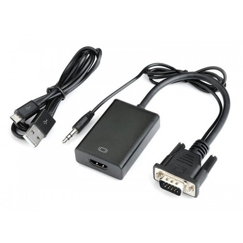 Convertor adaptor VGA Tata la HDMI Mama, cu cablu 25cm si cablu audio jack 3.5mm tata-tata si alimentare USBAtentieFunctioneaza doar pe directia VGA (pc, laptop, dvr, etc.) la HDMI (tv, monitoare, videoproiectoare), nu si invers. Pentru directia inversa vezi adaptor HDMI la VGAIntrare semnal: VGA (de la: laptop, pc, dvr, etc)Iesire semnal: HDMI (spre: TV, monitor, videoproiector, etc)Adaptorul VGA la HDMI, este un convertor universal analog la digital, cu intrare VGA (+ audio) si iesire HDMI. Convertorul hdmi are o constructie solida din aluminiu.Convertirea analog cu detectarea automata si conversia automata a semnalului, puteti conecta dispozitive cu port VGA (laptopuri, calculatoare, etc.) la dispozitive ( televizoare, monitoare, videoproiectoare … ) modele noi cu HDMI. Plug and Play, nu necesita drivere. Suporta rezolutie maxima FHD 1080P / 60Hz . Suporta format HD versiunea 1.2Contine cablu alimentare USB 5V.