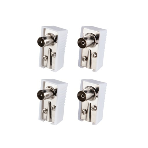 Mufa TV Mama Plastic 90 Grade EcranataConector tata si mama in unghi 90 grade pentru antena TV (coaxial) alb 75 Ohm