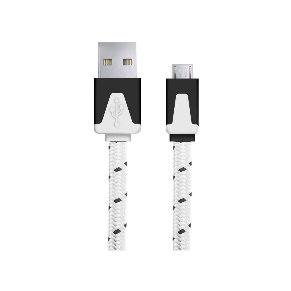 A_2748 EB176W Cablu Date+incarcare micro usb premium flat braided alb 1.5m