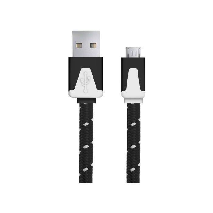 A_2747 EB176K Cablu Date+incarcare micro usb premium flat braided alb 1.5m Negru