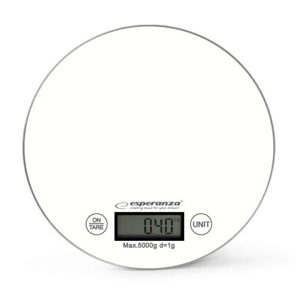 EKS003W Cantar de bucatarie ESPERANZA Mango, Alb, Sticla securizata, 5KgCantar electronic de bucatarie Esperanza EKS003W, ecran LCD mare, Dimensiunea produsului: 20.5 * 16.5 * 2cm • Echipat cu o masuratoare de inalta precizie. • Capacitate maxima: 5000g • Diviziune: 1g • Patru unitati de masura: g / lb / oz / kg • Functie tara • Indicator de suprasarcina • Indicator de baterie scazuta • Alimentare: 1x CR2032Folositi cu incredere Cantarul electronic de bucatarie Esperanza EKS003W!