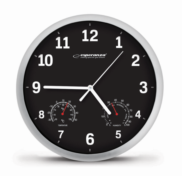 EHC016K Ceas de perete Lion Negru cu termometru si barometruAcest ceas nu numai ca va arata ora precisa, dar va arata si temperatura camerei si umiditatea. Caracteristici: