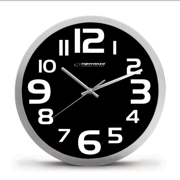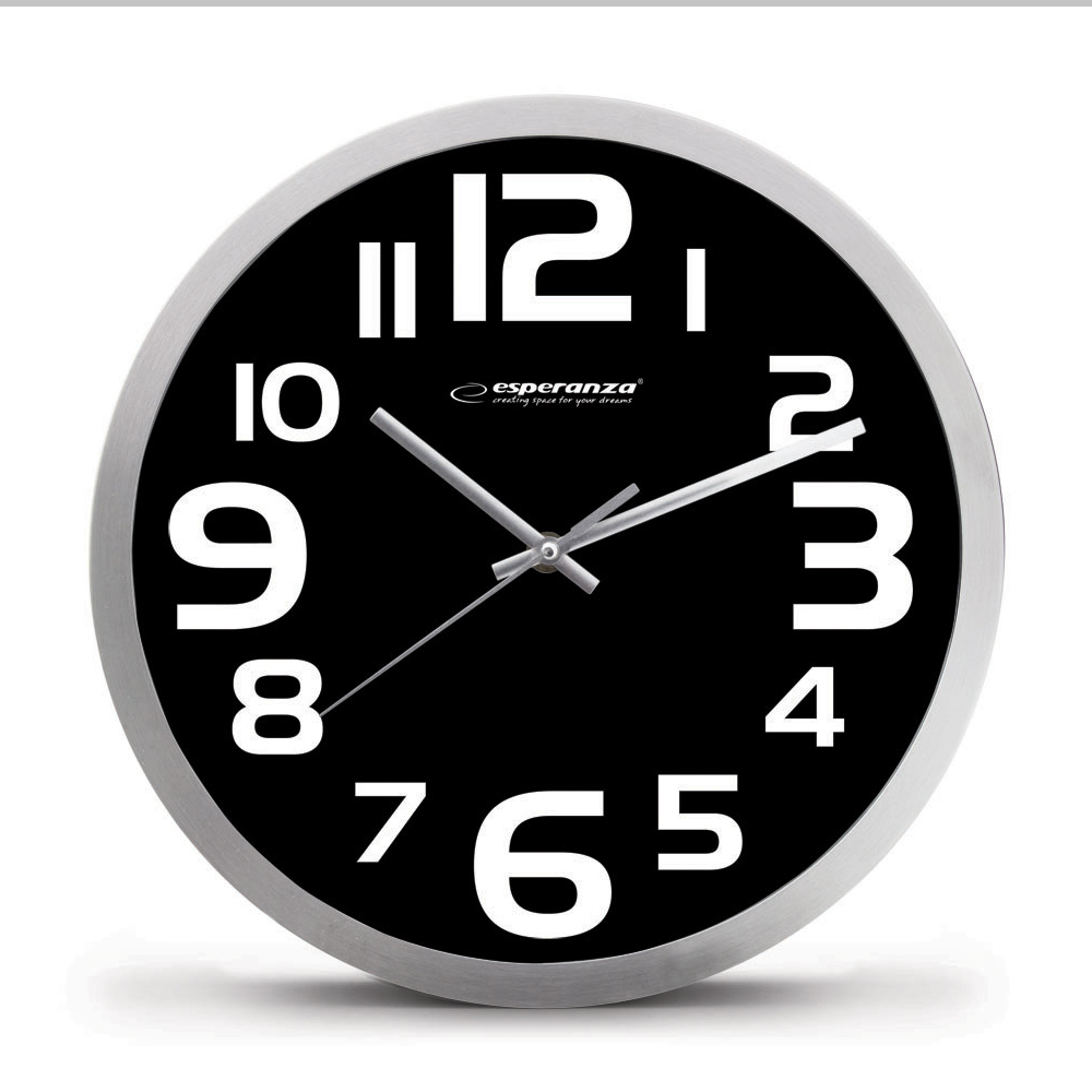 EHC013K Ceas de perete Esperanza Zurich NegruCeasul de perete Esperanza Zurich este un obiect practic care infrumuseteaza locuinta si in acelasi timp poate fi un cadou inedit. Cu un aspect elegant se incadreaza perfect in orice decor.