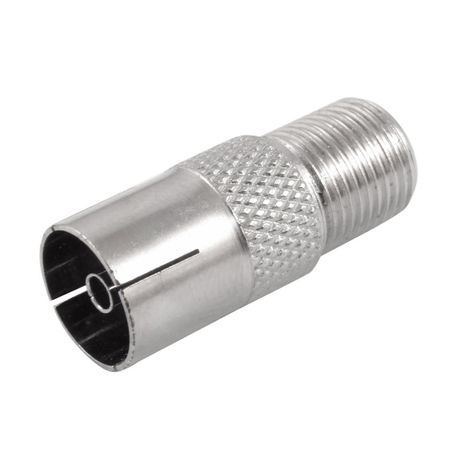 Adaptor drept pentru conectarea unui cablu cu mufa F (de splitter) in spatele unui televizor in perete.Coaxial IEC 9.5mm la F mama ,