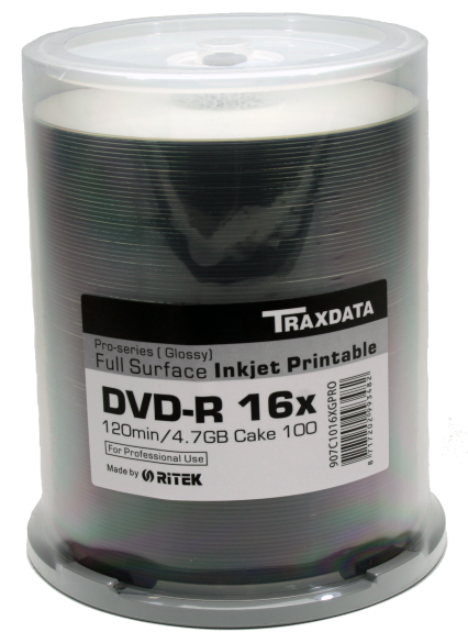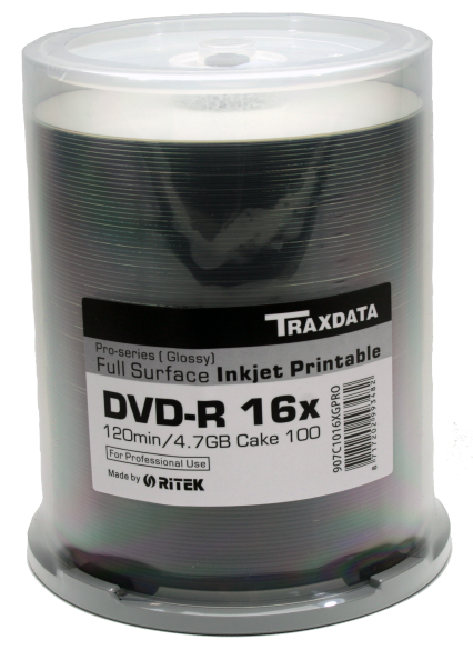 A_0435 DVD-R 4.7GB 16X Traxdata Glossy Printabil Cake Box 100