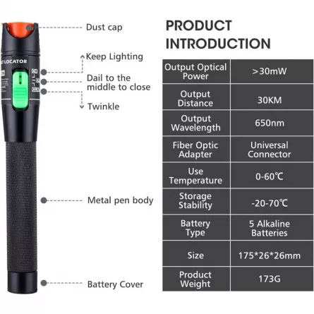 Detectorul/Testerul de fibra optica de 650 nm a fost conceput special pentru lucratorii de teren pentru a va oferi un instrument eficient si esential.