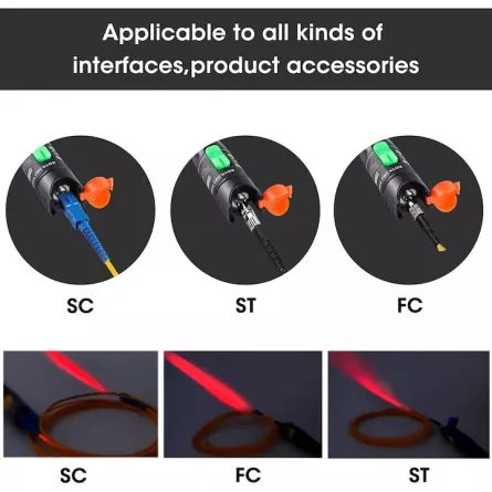 Recunoastere simpla si precisa. Poate detecta si localiza cu usurinta si precizie conexiuni proaste, deformatii sau fisuri. Detectorul emite lumina puternica de 650 nm pentru a inspecta fibrele si a detecta fisuri sau defecte. Acest lucru creeaza o stralucire in jurul zonei deteriorate.
