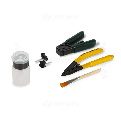 Pachetul contine:: 1 x Trusa de scule, 1 x Splicer AI-9 Signal Fire, 1 x Set de electrozi de rezerva, 1 x Cleaver, 1 x Stripper fibre optice cu 3 pozitii, 1 x Stripper pentru cabluri FTTH plate, 1 x Sticluta cu dozator alcool izopropilic, 1 x Pensula, Cutie pentru splicer