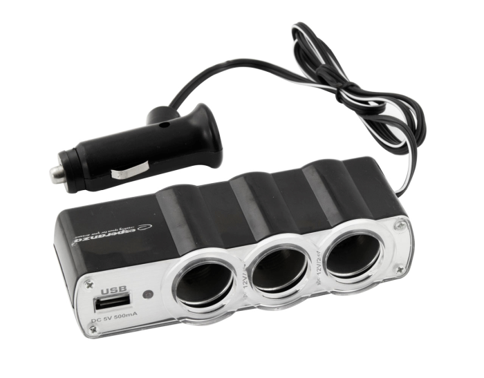 Splitter pentru bricheta auto cu port USB pentru incarcarea dispozitivelor mobile DATE TEHNICE: Tensiune de intrare: 12-24V Curent de iesire: 5A Port USB: 5V / 500mA Lungime cablu: 80cm