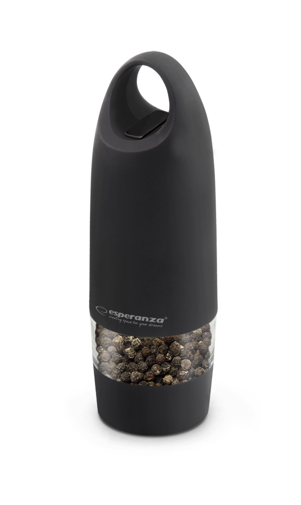 Rasnita noastra de piper si sare este conceputa pentru a face viata mai usoara utilizatorilor nostri. Puteti macina piperul si sarea pâna la grosimea dorita, apasând doar un buton. Este dotat cu piatra de moara ceramica pentru a asigura o durata lunga de utilizare. Pofta buna! Usor de utilizat cu un singur buton Iluminare LED in timpul utilizarii Grosimea de macinare reglabila Lungime: 17 cm Diametru: 5 cm Putere: 4* baterii AA (nu sunt incluse)